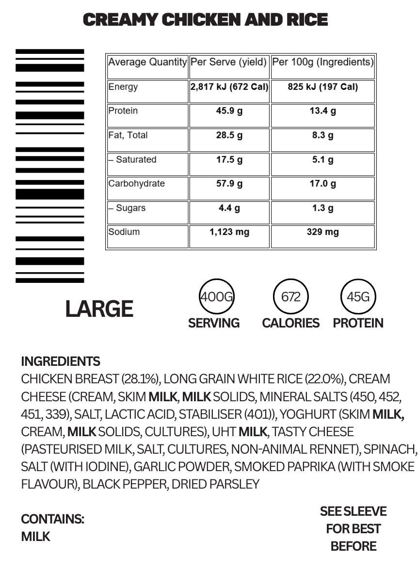 Tender chicken pieces served with fluffy rice in a rich, creamy sauce. A comforting, heat-and-eat classic perfect for a satisfying meal any time of day.