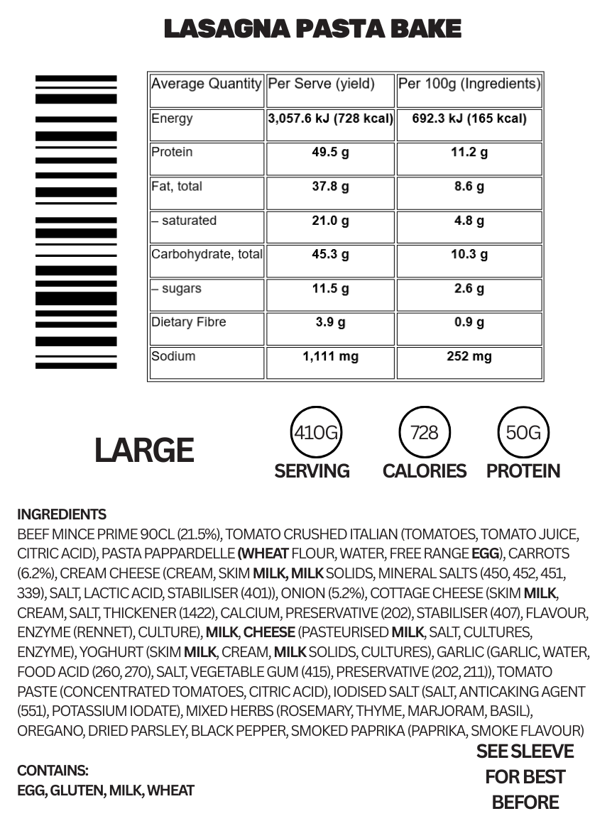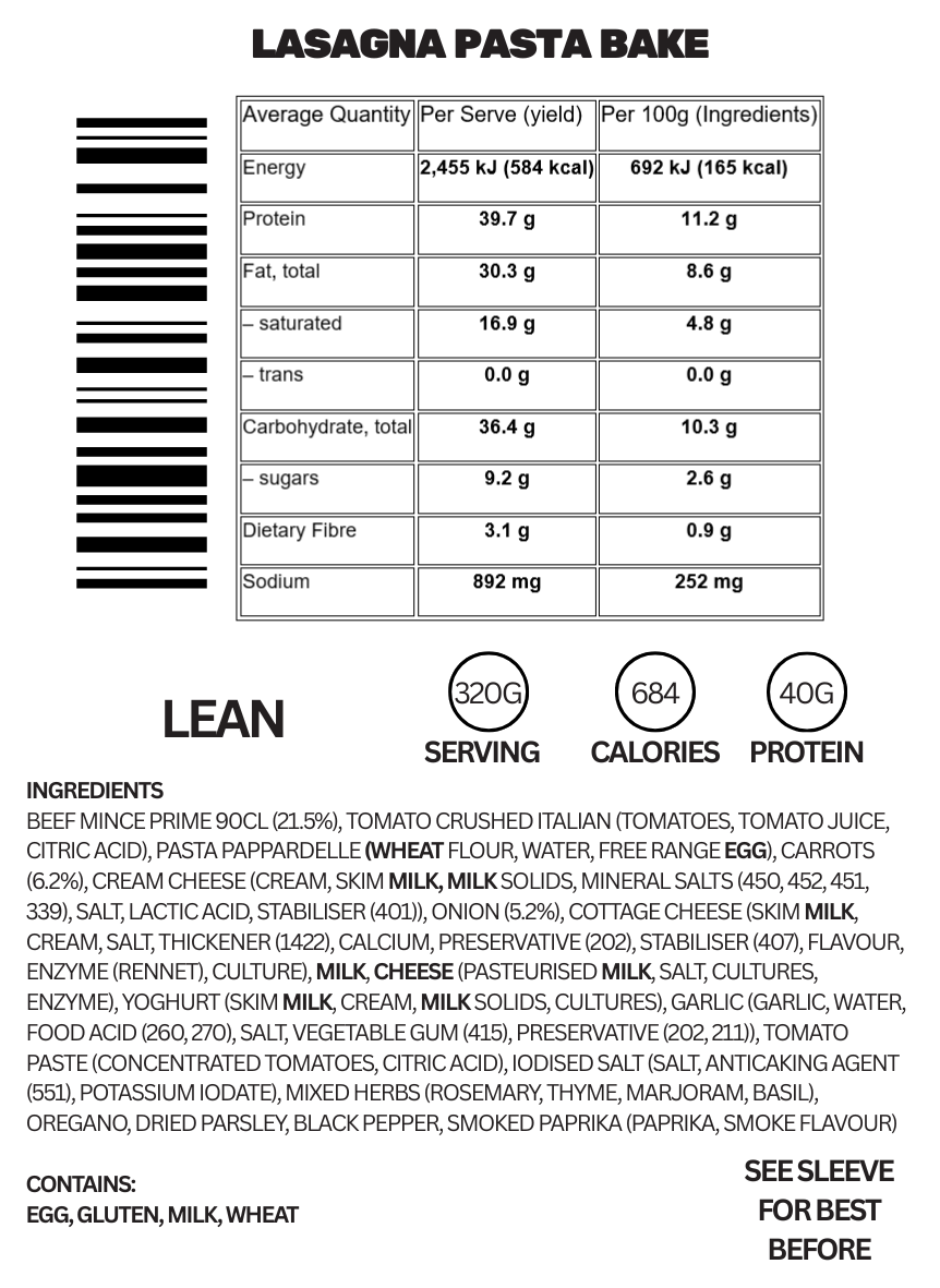 $0.00Indulge in a high-protein, low-calorie Lasagna Pasta Bake—a delicious, heat-and-eat meal packed with lean protein, layers of rich tomato sauce, and perfectly baked pasta. Satisfying, nutritious, and ready in minutes!