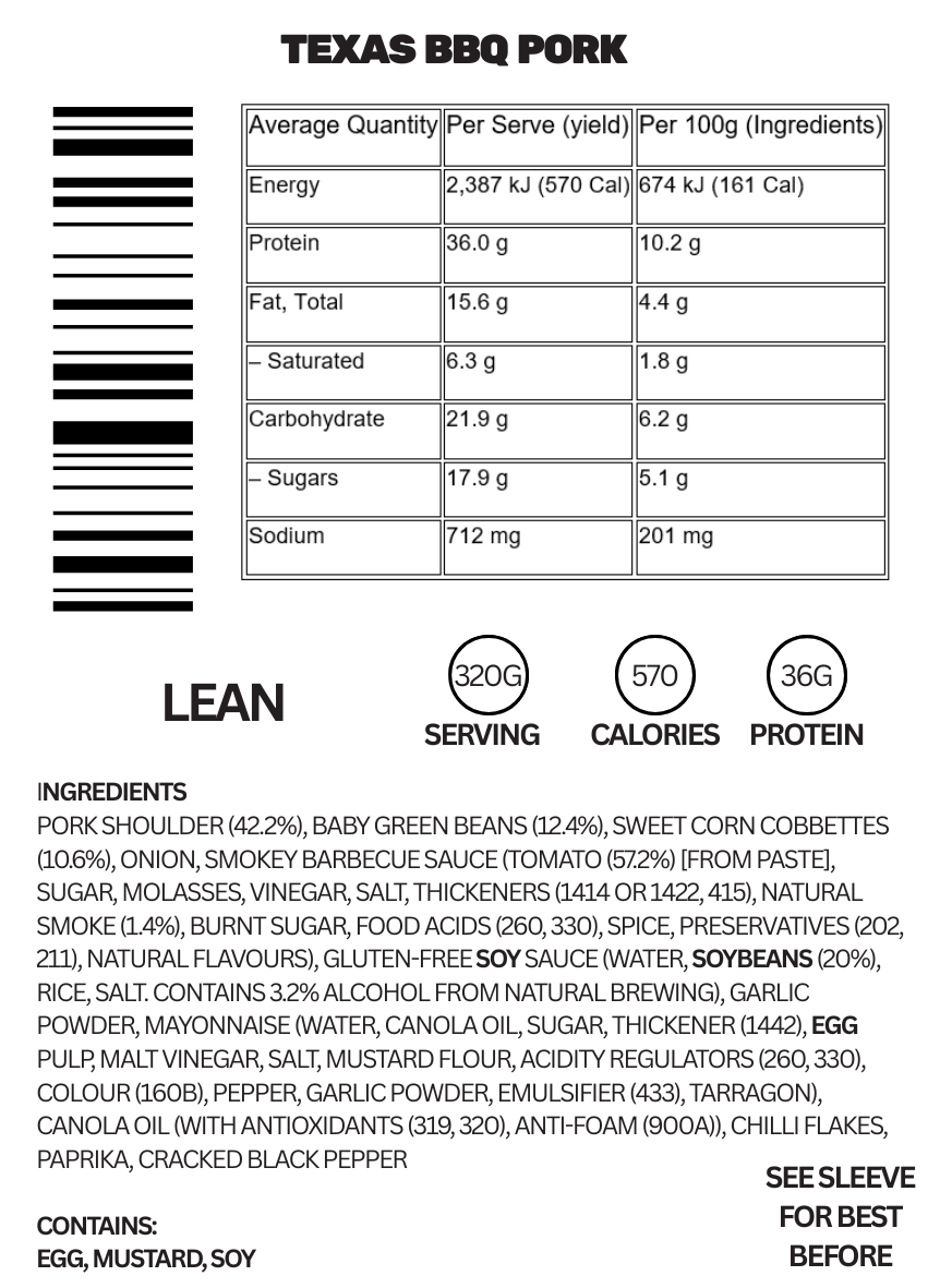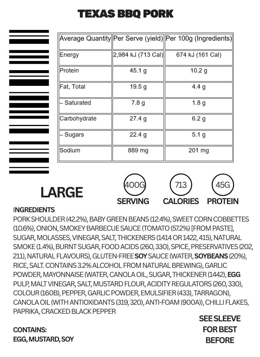 $0.00A hearty, high-protein, low-calorie meal featuring slow cooked pork paired with corn and crucnhy beans. Perfectly balanced for a nutritious, satisfying heat-and-eat option.